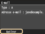 / pour consulter, un à un, les destinataires que vous avez spécifiés. Affichez le destinataire à supprimer et appuyez sur . |