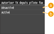Sélectionnez <Réglages fonction TX> <Autoriser TX depuis le pilote fax>.