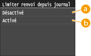 Sélectionnez <Limiter fonction TX> <Limiter le renvoi depuis le journal>.