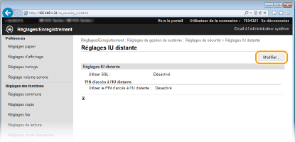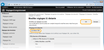 Cliquez sur [Réglages de sécurité]  [Réglages IU distante].