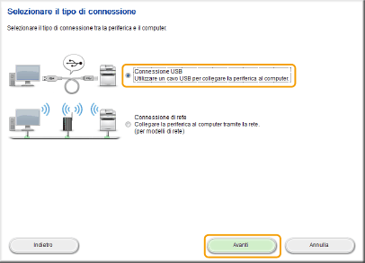 Selezionare [Connessione USB], e fare clic [Avanti].