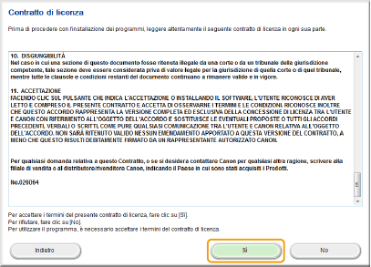 Leggere l'Accordo di licenza e fare clic su [Sì] per accettare.