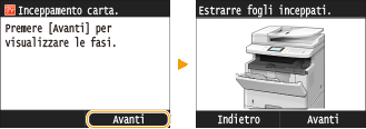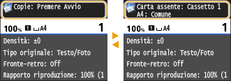 <Impostaz. carta>Questo pulsante è utilizzato anche per specificare il formato e il tipo di carta caricata nel cassetto della carta e vassoio multiuso. Indicazione di formato e tipo di carta