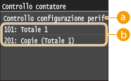 ) viene visualizzata la schermata <Controllo contatore>. Da questa schermata è possibile visualizzare i valori dei contatori di stampe, nonché il numero di serie della macchina e la sua configurazione.
