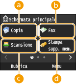 sul pannello operativo. Utilizzare questa schermata per specificare le impostazioni e per registrare le funzioni.