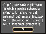 Se la schermata Schermata principale è piena e non è possibile registrare altre impostazioni, eliminare pulsanti registrati e spazi in <Impostaz. sch. princ.>.