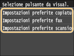 Selezionare la funzione con le Impostazioni preferite che si desidera aggiungere come pulsante.