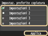 Selezionare la casella di controllo di tutte le impostazioni da visualizzare nella Schermata principale e toccare <Applica>.