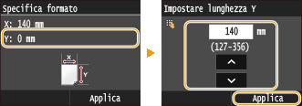 Immettere la lunghezza del lato <Y>, quindi toccare <Applica>.