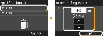 Immettere la lunghezza del lato <Y>, quindi toccare <Applica>.