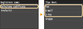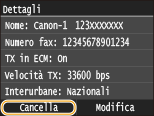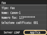 <Impostazioni fax>. Le impostazioni configurate da <Rubrica> sono abilitate per le impostazioni dettagliate delle destinazioni nella Rubrica. |
