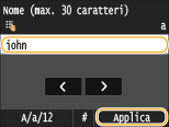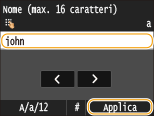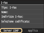 ![]() Se viene visualizzata la schermata di autenticazione quando si tocca <Avvio ricerca>, immettere il nome utente della macchina e la password registrati nel server LDAP, quindi toccare <Applica>. Registrazione server LDAP
