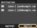 Ripetere i passi da 7 a 9 fino a registrare tutte le destinazioni desiderate, quindi toccare <Applica>.