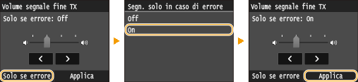 Selezionare <On> (viene emesso un suono) o <Off> (non viene emesso alcun suono).