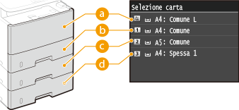 È necessario innanzitutto specificare il formato e il tipo di carta caricato nell'origine della carta.