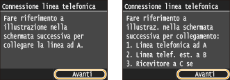 Toccare <Avanti> dopo aver collegato la linea telefonica.