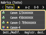 La Rubrica consente di specificare una destinazione selezionandola da un elenco di destinazioni registrate o tramite ricerca per nome delle destinazioni con i nomi dei destinatari.