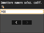 Agli indirizzi nella Rubrica vengono assegnati numeri a tre cifre (numeri a selezione codificata). È possibile specificare un indirizzo semplicemente immettendo il numero a selezione codificata corrispondente.