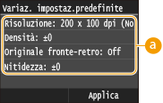 <Variazione impostazioni predefinite>