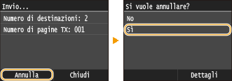 Toccare <Annulla> sullo schermo durante la Trasmissione fax