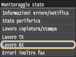 Toccare <Lavoro RX>.