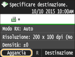 Se un telefono esterno o il ricevitore opzionale è collegato alla macchina, è possibile sollevare il ricevitore invece di toccare <Aggancia>.