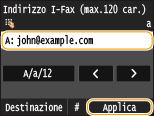 Immettere l'oggetto utilizzando i tasti numerici e toccare <Applica>.