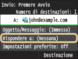 ![]() ![]() L’indirizzo di risposta che può essere specificato è sempre uno degli indirizzi e-mail registrati nella Rubrica.