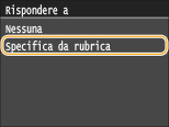 Selezionare un indirizzo di risposta dalla Rubrica.