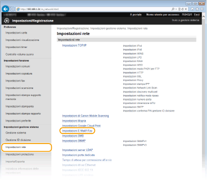 [Impostazioni E-Mail/I-Fax].![]() |