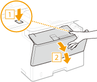 Quando appare uno dei sintomi sopra indicati, procedere come indicato di seguito per utilizzare tutto il toner contenuto nella cartuccia. Questa procedura può consentire di ottenere una stampa corretta per un periodo di tempo limitato fino all'esaurimento del toner. Se il sintomo non migliora dopo aver eseguito questa procedura, sostituire la cartuccia di toner (
