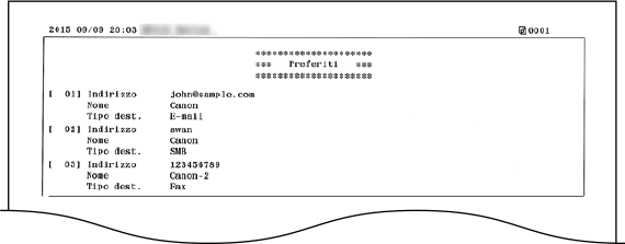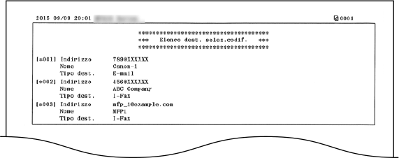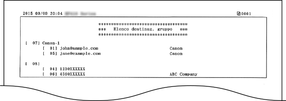 È possibile controllare l'elenco delle destinazioni registrate nella Rubrica come <Selezione codificata>, <Preferiti> e <Selezione gruppo> stampando un Elenco rubrica.