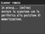 Se la scansione non viene eseguita entro un determinato periodo di tempo dopo la visualizzazione della schermata seguente (la macchina è online per la scansione), la macchina va automaticamente offline. Specificare il periodo di tempo al termine del quale la macchina va offline. È inoltre possibile impostare la macchina affinché rimanga online.