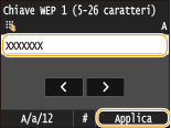 Immettere la chiave di rete utilizzando i tasti numerici, quindi toccare <Applica>.