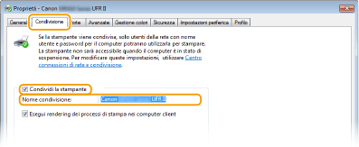 Per utilizzare la Gestione ID reparto con un server di stampaDurante l'installazione del driver stampante, è necessario aggiungere "Canon Driver Information Assist Service". Consultare "Guida di installazione MF Driver" per i dettagli.