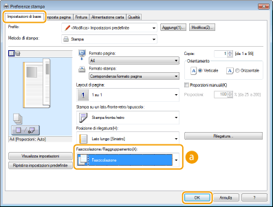 Selezionare [Fascicolazione] oppure [Raggruppamento] in [Fascicolazione/Raggruppamento]