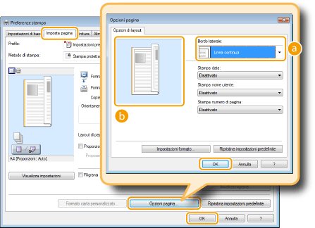 È possibile aggiungere bordi, ad esempio linee tratteggiate o doppie, sui margini delle stampe.