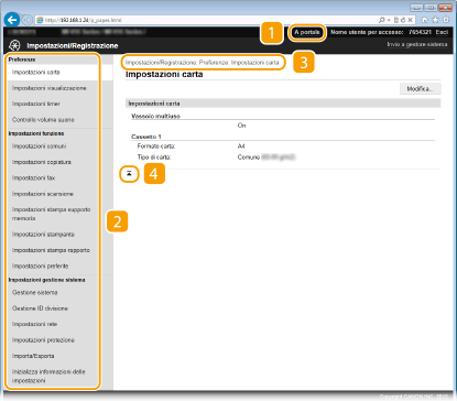 Visualizza la pagina [Impostazioni/Registrazione]. Dopo aver eseguito l'accesso in modalità Gestore sistema, è possibile modificare le voci di impostazione e salvare/caricare i dati registrati.