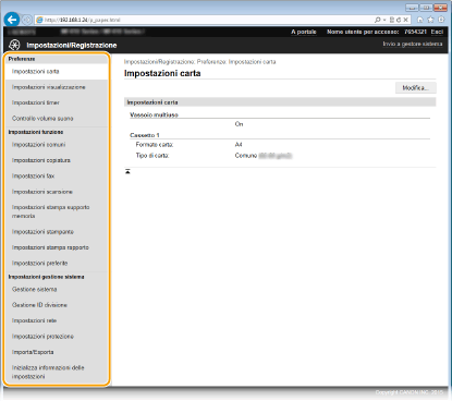 Alcune impostazioni possono essere modificate solo dopo aver effettuato l'accesso in modo Gestore sistema.