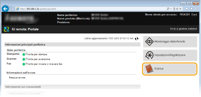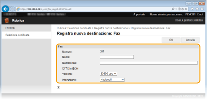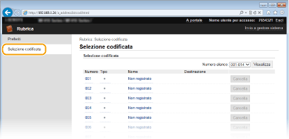 Registrazione delle destinazioni nella Rubrica dall'IU remota