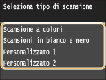 Per registrare combinazioni di impostazioni di scansione e visualizzarle quando necessario:Registrazione delle impostazioni di scansione utilizzate frequentemente (e-mail/I-Fax/cartella condivisa/server FTP)