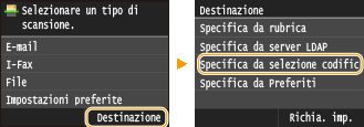 Per utilizzare i numeri di selezione codificata, le destinazioni devono essere state già registrate nella Rubrica. Registrazione delle destinazioni nella Rubrica