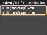 Se nell'ufficio è installato un server LDAP, è possibile specificare una destinazione utilizzando le informazioni utente nel server. Accedere al server LDAP tramite la macchina e cercare le informazioni utente appropriate e specificarle come destinazione.