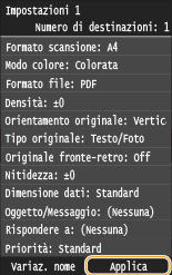 Controllare i dettagli delle impostazioni da registrare e toccare <Applica>.