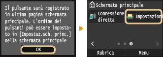 Se la schermata Schermata principale è piena e non è possibile aggiungere il pulsante, utilizzare <Impostaz. sch. princ.> per eliminare i pulsanti registrati o gli spazi vuoti.