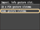 Immettere fino a 32 caratteri per il Nome gestore sistema, quindi toccare <Applica>.