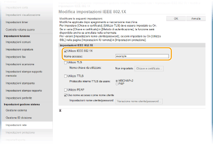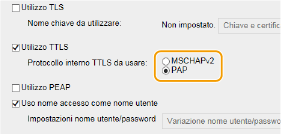 Selezionare la casella di controllo [Utilizzo TTLS] o [Utilizzo PEAP].