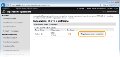 Fare clic su [Registrazione chiave predefinita] a destra della coppia di chiavi che si desidera utilizzare per l'autenticazione.
