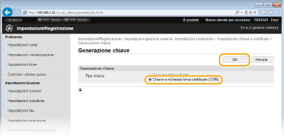 Selezionare [Chiave e richiesta firma certificato (CSR)] e fare clic su [OK].