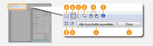Sie können Schnittbereiche im Dokument festlegen, so dass jeder als separates Bild gescannt wird. Ziehen Sie die Schnittrahmen, um die zu scannenden Bereiche festzulegen. Sie können bis zu 10 Bereiche festlegen. Klicken Sie auf [Scannen], um die Bereiche in den Schnittrahmen als separate Bilder zu scannen.